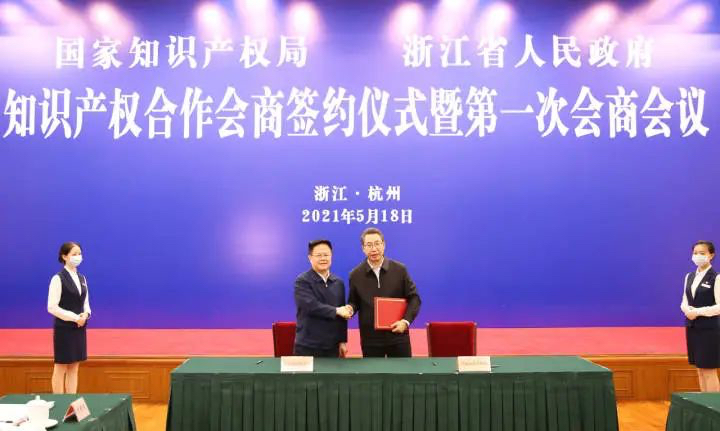 5月18日,全省知识产权保护大会在杭州召开,这也是浙江首次以知识产权保护为主题召开全省性大会。会后,省政府与国家知识产权局举行了会商会议,双方签署了知识产权合作会商议定书。省委书记袁家军指出,以数字化改革驱动知识产权保护流程再造、综合集成、制度重塑,推进知识产权保护“一件事”集成改革,坚持数字化引领、法治化保障、体系化重塑、市场化运作、项目化推进、差别化管理,加快打通知识产权创造、运用、保护、管理、服务全链条,推动知识产权数量多起来、结构优起来、运用活起来、形象树起来,努力打造知识产权强国建设先行省。