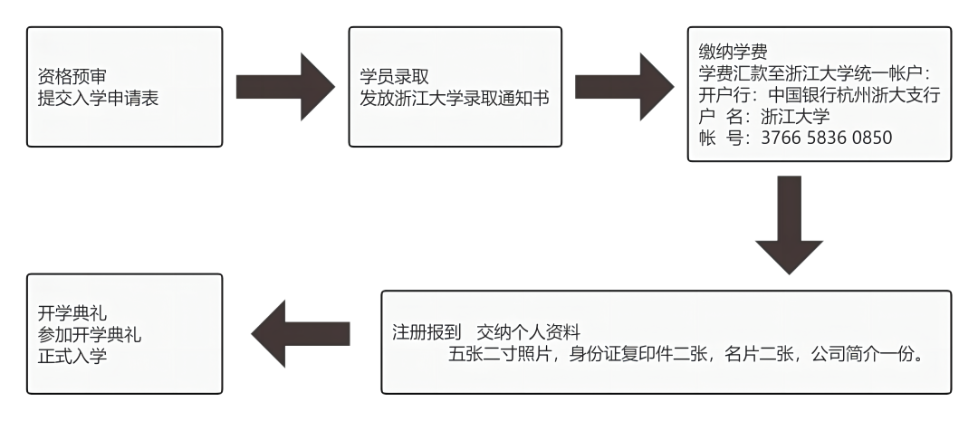 请以银行汇款方式交纳至浙江大学统一账户,在汇款单“汇款用途”一栏注明“数智化转型班XX培训费”,汇款后请将银行汇款底单发邮件至:qiuxiaojun@zju.edu.zn并截图微信发给数经联秘书处许老师(微信同号:15757730011)。