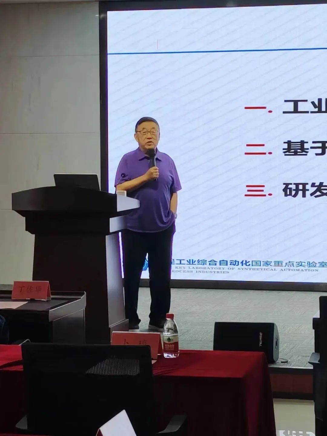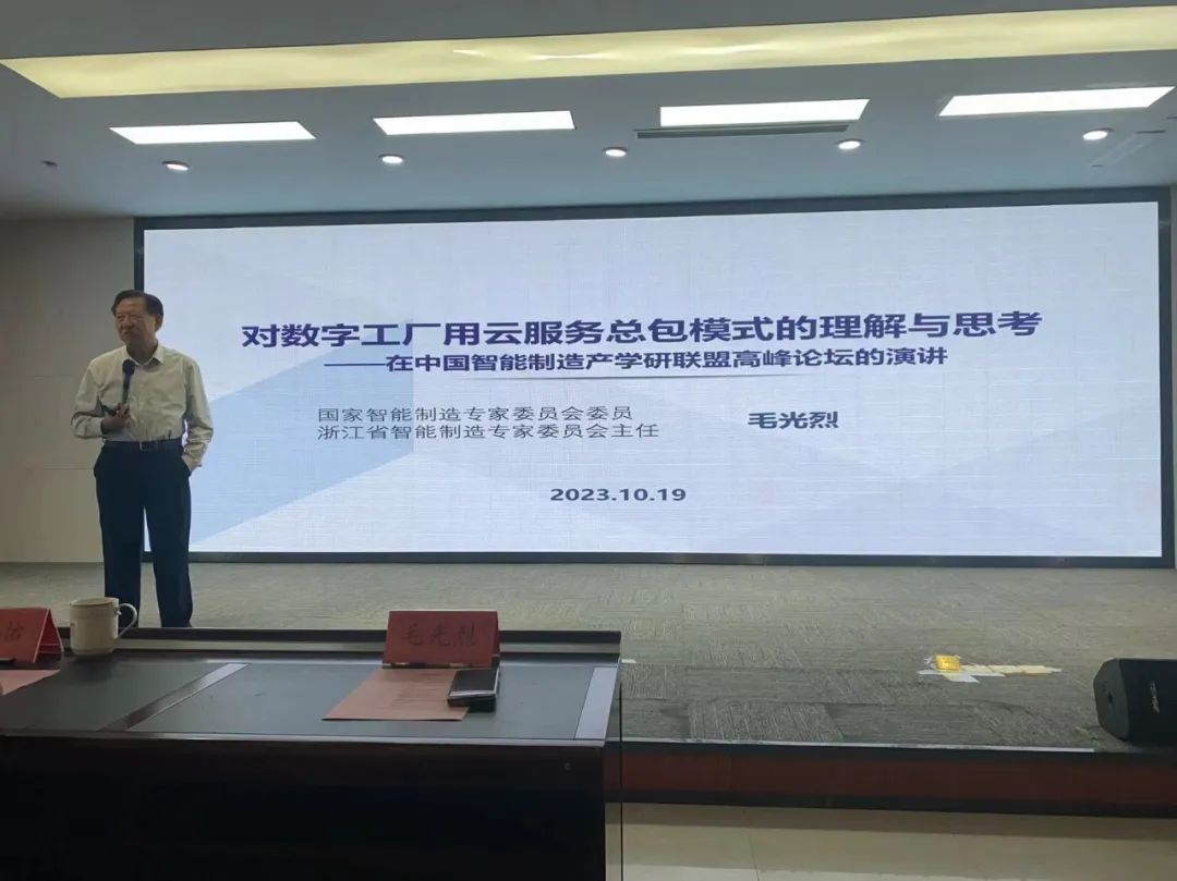 随后,开启了重量级的特邀嘉宾作主题报告,上半场有两嘉宾,第一位是浙江省智能制造专委会主任毛光烈,报告主题为《对数字工厂用云服务总包模式的理解与思考》,毛主任用自己丰富的时间经验和审核的技术造诣分析了数字工厂的发展路径及问题,尤其是中小企业的数字化如何开展及所处的现实问题。第二位是中国工程院院士柴天佑《基于新一代信息技术的工业智能系统及未来展望》的主题演讲,柴院士分析了工业自动化与信息化系统在工业革命中的作用以及工业企业自动化与信息化系统现状和存在的主要问题,提出了工业智能系统的内涵和实现工业智能系统面临的挑战难题,通过将新一代信息技术与复杂工业过程深度融合与协同发展工业智能系统的应用案例,表明新一代信息技术为解决工业智能系统的挑战难题提供了新的途径,最后提出了工业智能系统的研发思路与方法。