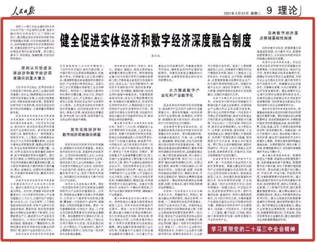 工信部部长金壮龙撰文指出,适度超前部署信息基础设施。信息基础设施是实体经济和数字经济深度融合的先决条件。要加强战略布局,加快建设高速泛在、天地一体、云网融合、智能敏捷、绿色低碳、安全可控的智能化综合性数字信息基础设施。建立健全信息基础设施统筹规划、整体布局和协调联动的体制机制,适度超前建设5G、算力等信息基础设施,深入推进工业互联网创新发展,深化“5G+工业互联网”融合创新和规模化应用。发展卫星互联网,推进第六代移动通信(6G)网络技术研发。打造具有国际竞争力的数字产业集群。要建立健全科技创新和产业创新深度融合的体制机制,强化企业科技创新主体地位,围绕推进新型工业化、加快建设制造强国的战略任务,科学布局科技创新、产业创新,建设一批行业共性技术平台,加快布局建设一批概念验证、中试验证平台,促进科技成果转化应用。要针对集成电路、基础软件、科研仪器等瓶颈制约,加大技术研发力度,为确保重要产业链供应链自主安全可控提供科技支撑。建设和运营国家数据基础设施。数据基础设施是实体经济和数字经济深度融合的重要支撑。要加快建设适应数据要素特征、促进数据流通利用、发挥数据价值效用的数据基础设施,推动数据汇聚、处理、流通、应用、交易等功能有序高效运转,促进数据共享。构建全国一体化大数据中心体系,推动智能计算中心有序发展,建设若干国家枢纽节点和大数据中心集群。积极发展车联网等融合基础设施。发展数据空间、隐私计算、区块链、数据脱敏等技术,有效提升数据流通环节安全可靠水平。