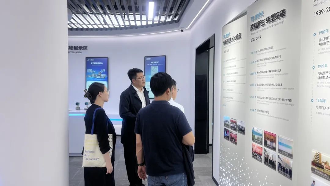 根据走访行程安排,市科协领导一行参观了数经联会长单位杭州自动化技术研究院精心打造的绿峰中心(杭州国际智能孵化器)及位于22楼的拓峰智能数字化展厅。此次参观调研的重点包括流程制造数字化、数字孪生技术、机器人技术、智慧能源以及区域生态的相关展示。在参观过程中,他们听取了关于杭州国际智能产业园及孵化器的详细工作情况介绍,特别是这些前沿技术在推动区域经济发展和科技创新方面的行业应用案例。