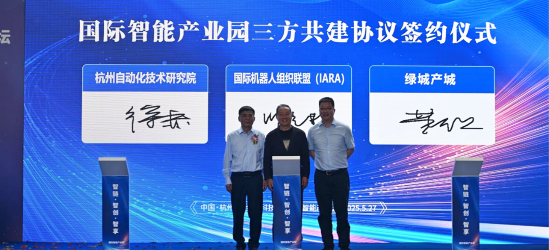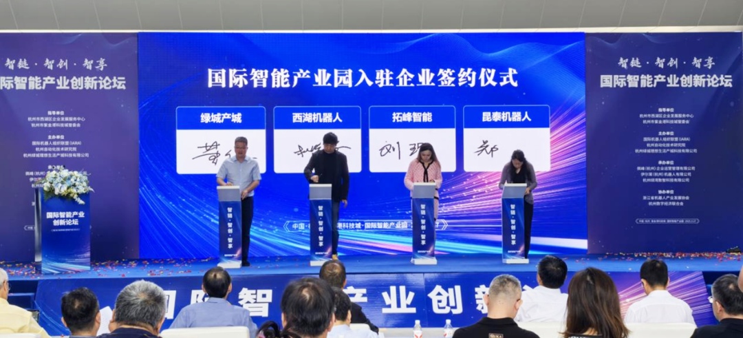 为更好推动园区高质量建设,论坛现场举行了国际智能产业园专家委员会专家聘任仪式,来自国内外的六位技术、投资和产业专家受聘为国际智能产业园专家委员会委员。国际机器人组织联盟(IARA)、杭州自动化技术研究院、杭州绿城理想生活产城公司共同签署了三方共建国际智能产业园合作协议。此外国际智能产业园与中国计量大学签署共建“创新创业实践基地”协议,加强校企协同育人。杭州自动化技术研究院与浙江省经济建设投资公司签署智能产业战略合作协议,为产业发展注入金融力量。同时国际智能产业园与杭州西湖机器人、杭州美齐科技、上海奥远峄创等六家智能科技企业签署入驻协议,标志着产业园正式迈入智能科技产业集聚与项目落地的崭新阶段。