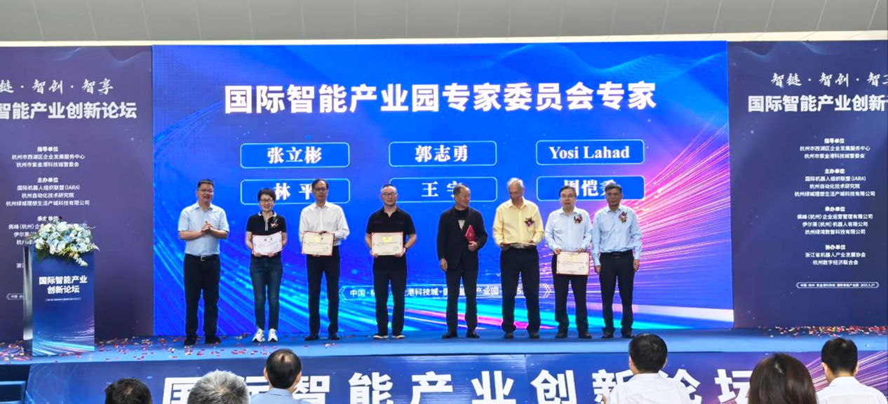 5月27日上午,备受瞩目的“国际智能产业创新论坛”在国际智能产业园成功举办。此次论坛由杭州市西湖区企业发展服务中心、杭州紫金港科技城管理委员会指导,杭州自动化技术研究院、国际机器人组织联盟(IARA)、杭州绿城理想生活产城科技有限公司联合主办,佩峰(杭州)企业运营管理有限公司、伊尔莱(杭州)机器人有限公司、杭州绿湾数智科技有限公司等承办,浙江省机器人产业发展协会、杭州数字经济联合会协办。论坛汇聚了来自国内外智能科技界的学术研究、科研开发、产业投资、高校院所、行业协会等领域的近二百位专家学者和企业界朋友。