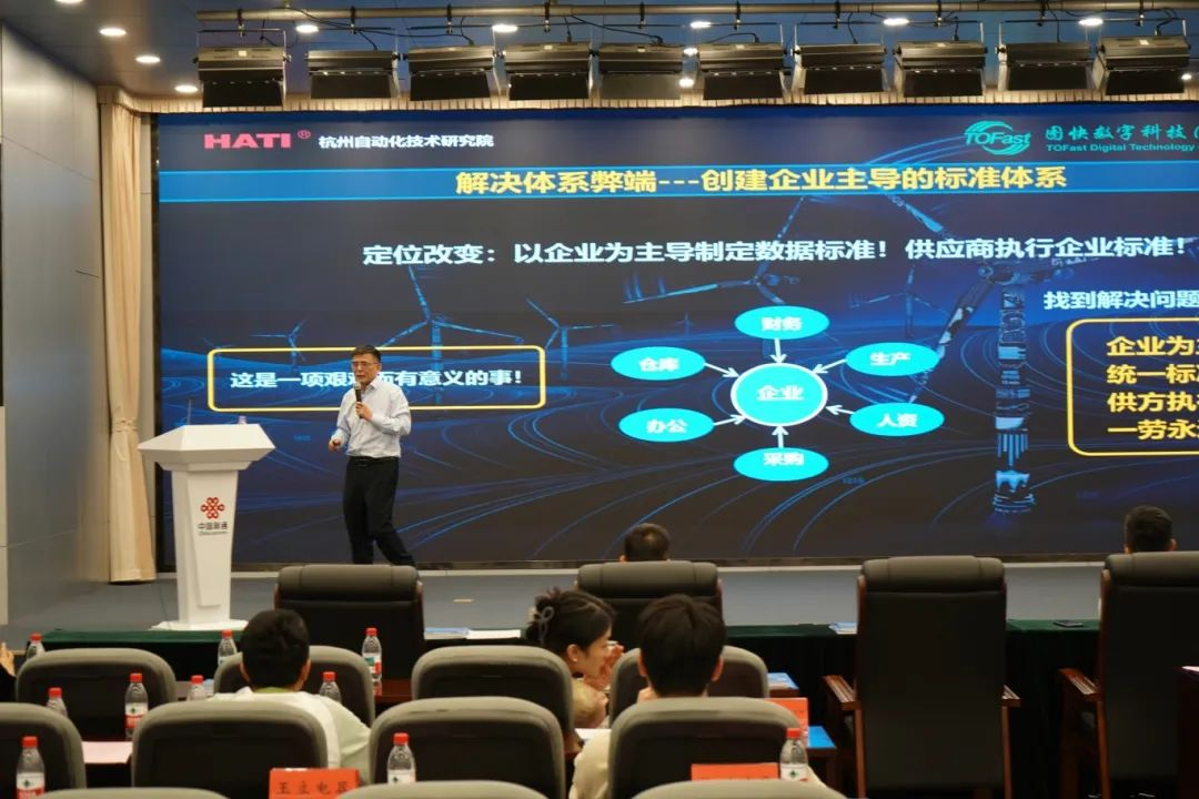 杭州市科协副主席、杭州数字经济联合会会长、杭州自动化技术研究院院长徐赤则以《企业大脑数据底座助力未来工厂建设》为题,阐述了企业大脑数据底座对于未来工厂建设的核心支撑作用,为制造业企业打造智能化工厂指明了方向。
