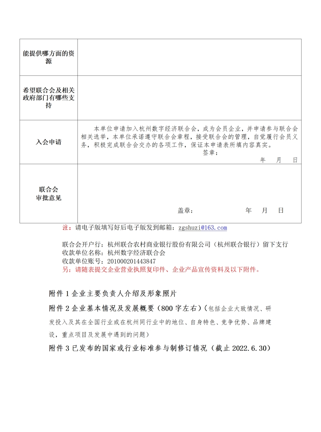 1.《杭州数字经济联合会入会申请书》并加盖公章;