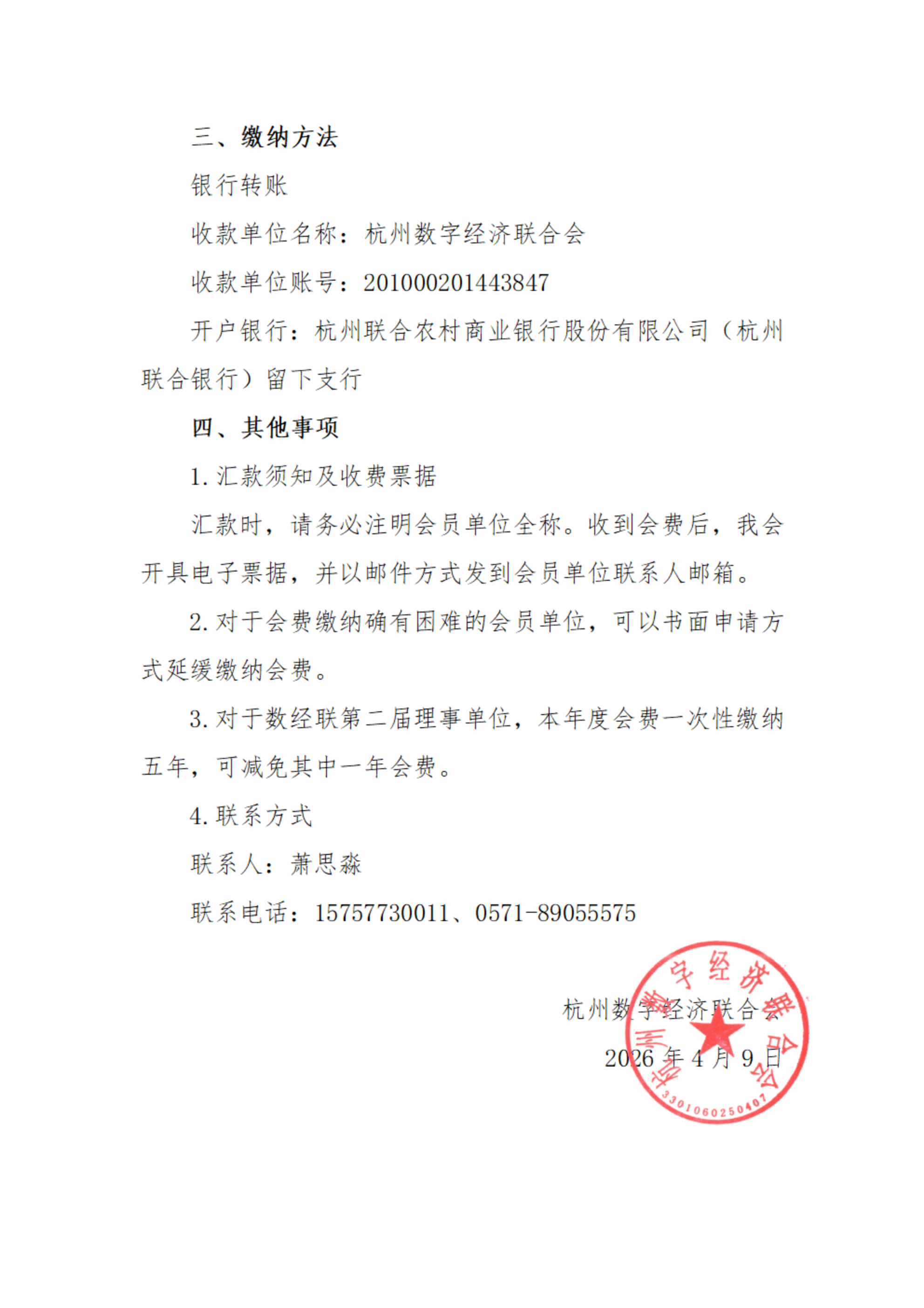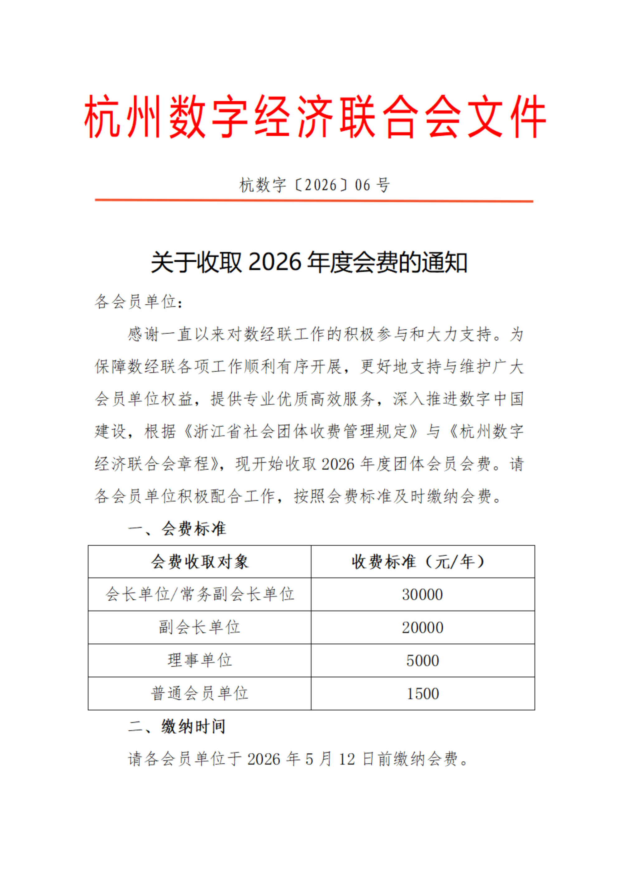 数经联关于收取2026年度会费的通知